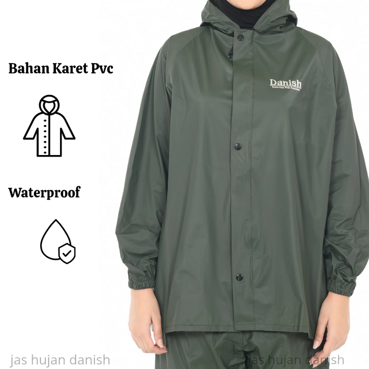 Jas Hujan Pria Dewasa Jas Hujan Danish Mantel Motor Bahan Karet PVC 0,25 Anti Rembes Raincoat Waterproof