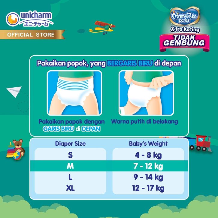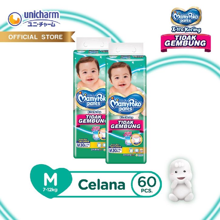 Popok Pampers Pempes MamyPoko Pants X-tra Kering Slim Tidak Gembung - M 30 - Popok Celana - 2 Packs 60 Pcs Termurah