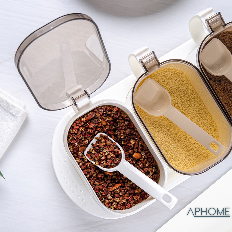APHOME KOTAK BUMBU DAPUR 4-IN-1 WADAH BUMBU SEASONING BOX RAK BUMBU TEMPAT BUMBU TOPLES BUMBU FREE 4 SENDOK MANDA