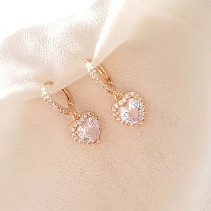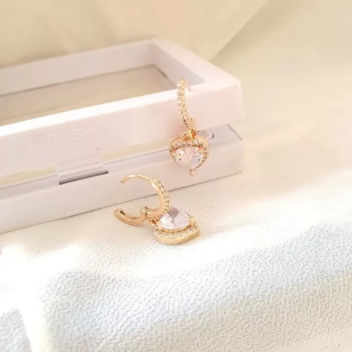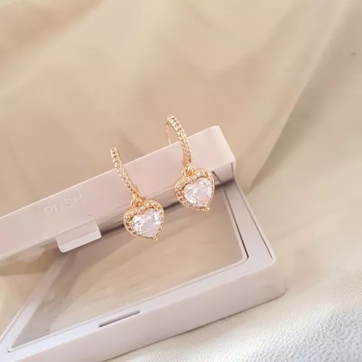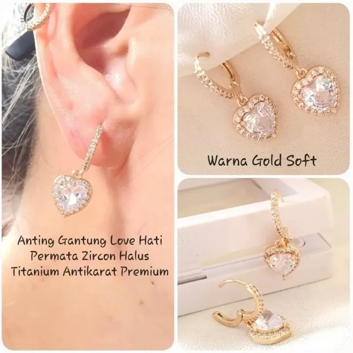 Anting Gantung Love Hati Gold Soft Permata Sirkon Halus Titanium Antikarat Premium