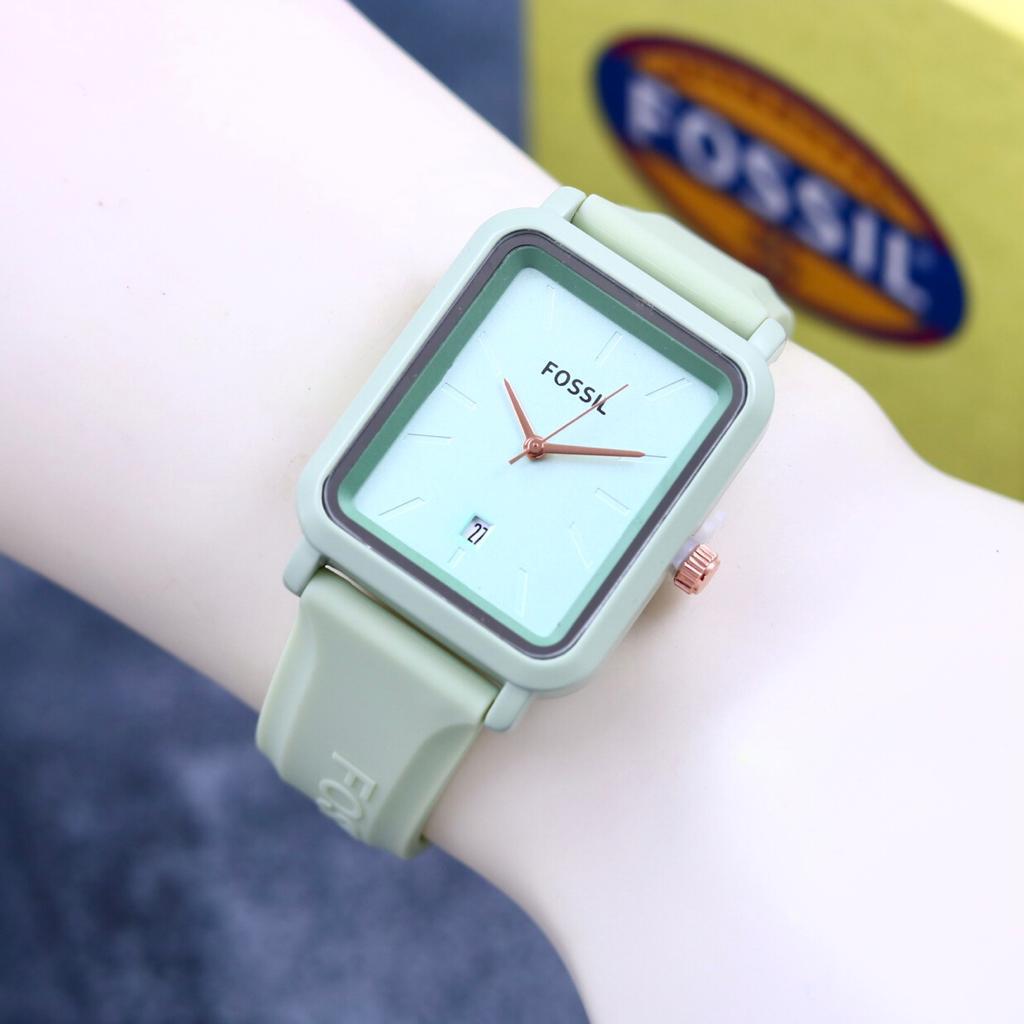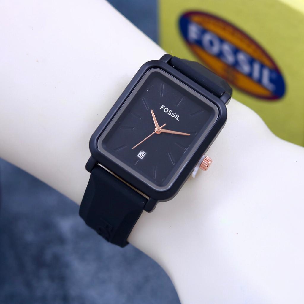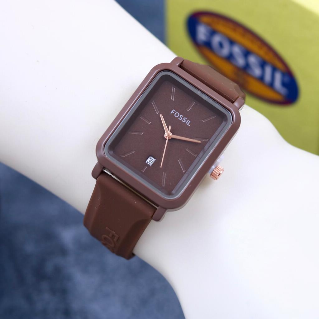 Jam Tangan Wanita Fosil Tali Rubber Tanggal Aktif Lengkap Box dan Baterai Cadangan