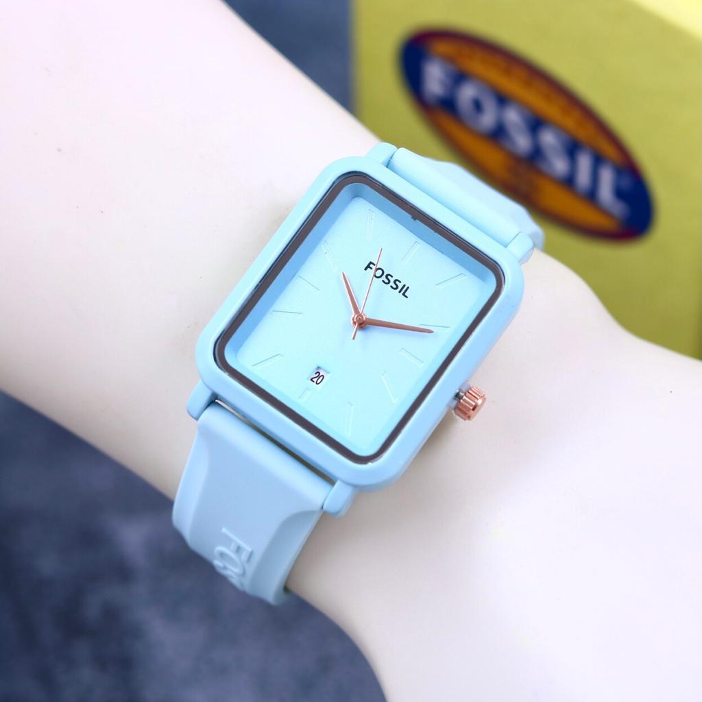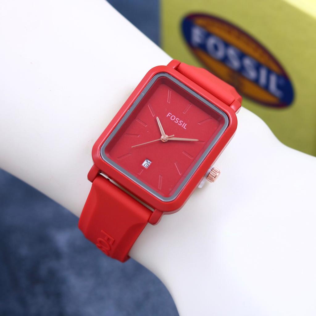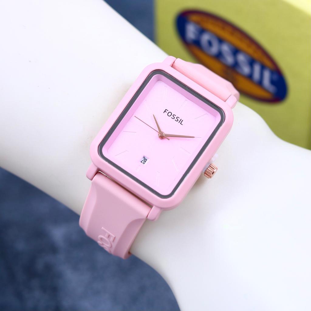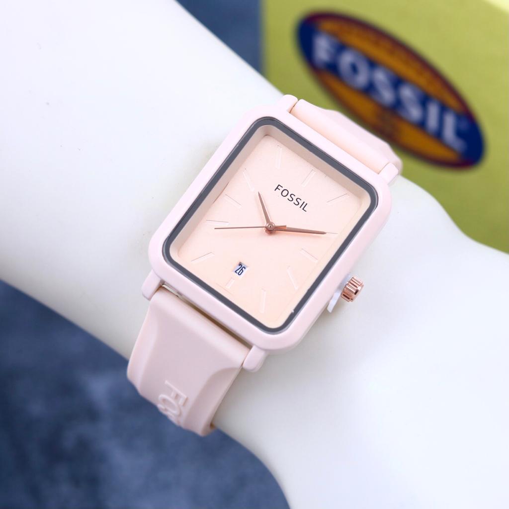 Jam Tangan Wanita Fosil Tali Rubber Tanggal Aktif Lengkap Box dan Baterai Cadangan