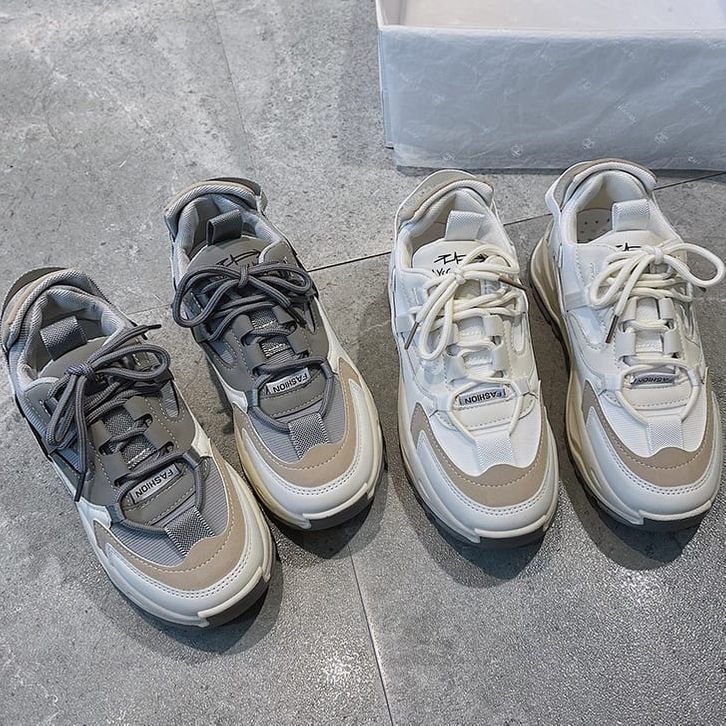 Kingbest " FREE BOX" (Size 37 - 41) Jungkook Sepatu Sneakers Wanita Sport Shoes Grey Krem 9009