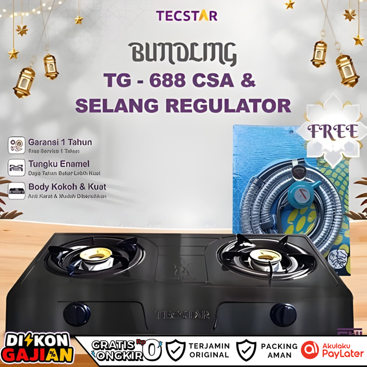 [Mall] TECSTAR Kompor Gas 2 Tungku Stainless Anti Lengket Slip 1 Sanex Progas Murah Turbo Tanpa DP Quantum Rinnai