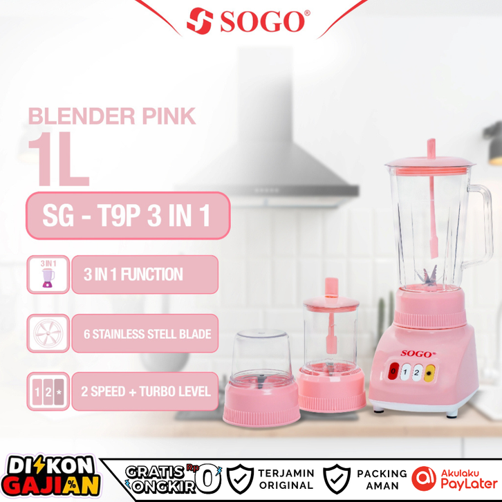 SOGO Blender Pink Ukuran 1 Litter Plastik Anti Pecah Stainless Steel Mesin Halus SANEX COSMOS YASAKA Chopper 2 3 Liter