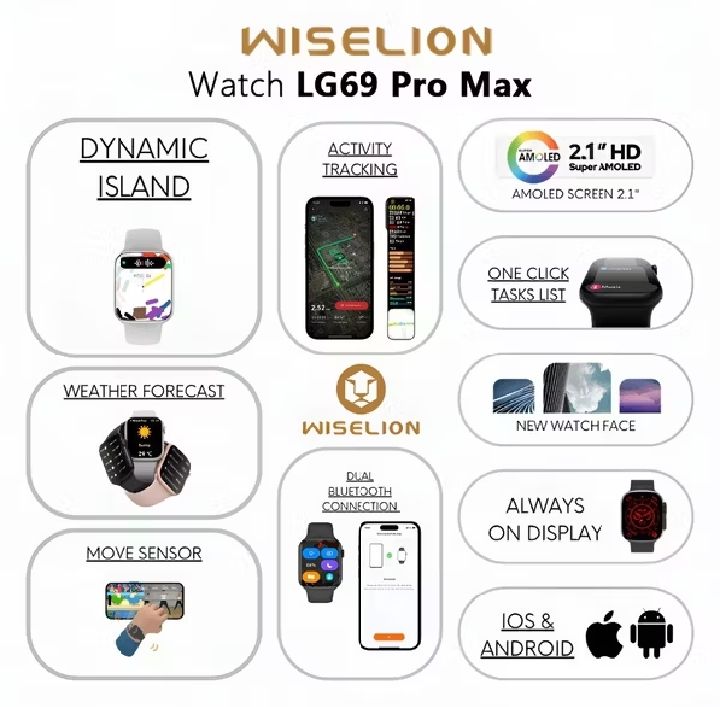 SMARTWATCH WISELION LG69 proMAX | NFC support | Hi-Fi sound music | BLUETOOTH Call Android IOS