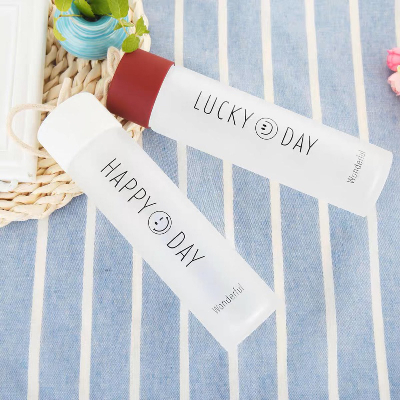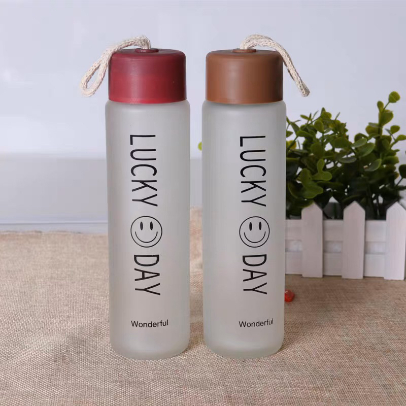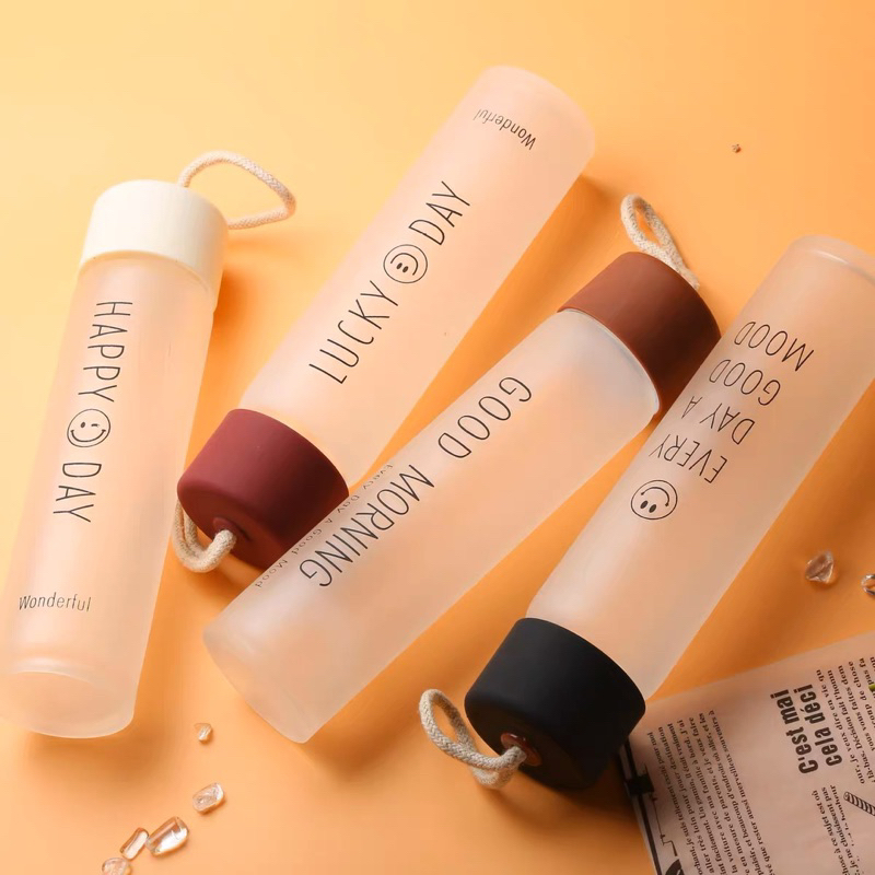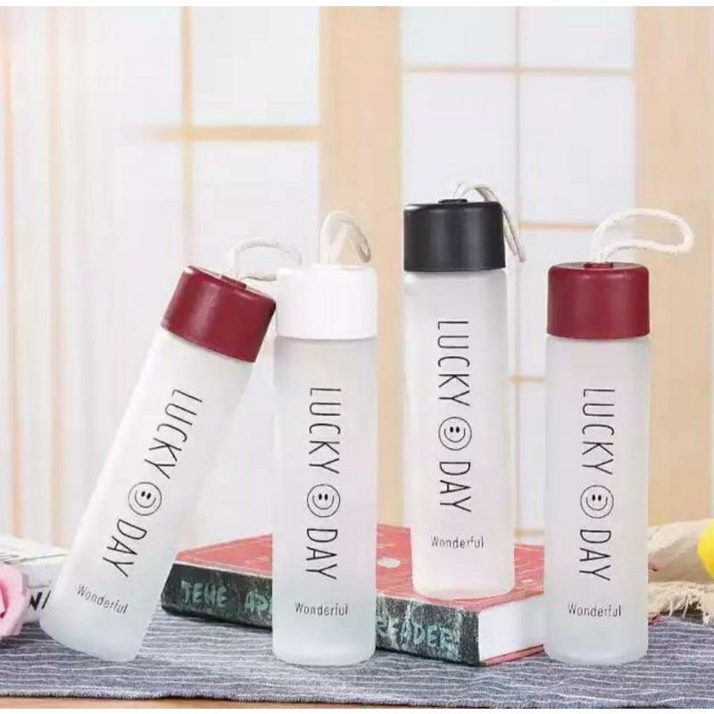 BOTOL AIR MINUM KACA LUCKY DAY - TUMBLER KACA SEKOLAH TRAVEL - TEMPAT BOTOL MINUM AIR KACA TEBAL