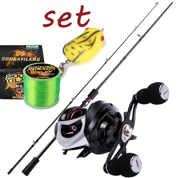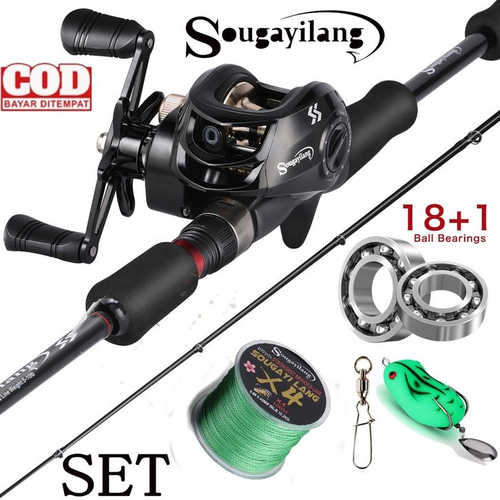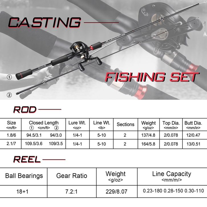Joran dan Reel 1.8M 2.1M 2 Bagian Casting Fishing Rod dan 18 + 1 BB 7.2:1 Rasio Gear Rem Magnetik Baitcasting Reel Meman
