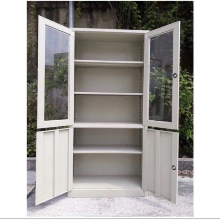 LEMARI BESI 2 PINTU KACA ARSIP KANTOR DAPUR BAJU PAKAIAN OBAT 1/2 KACA MURAH