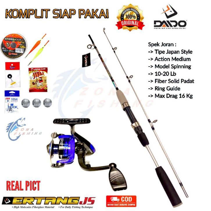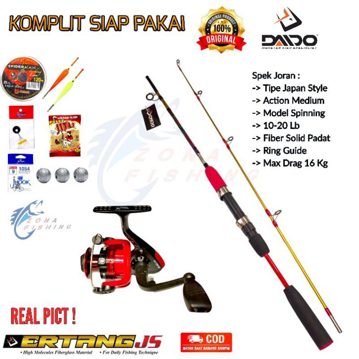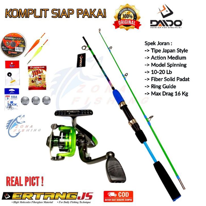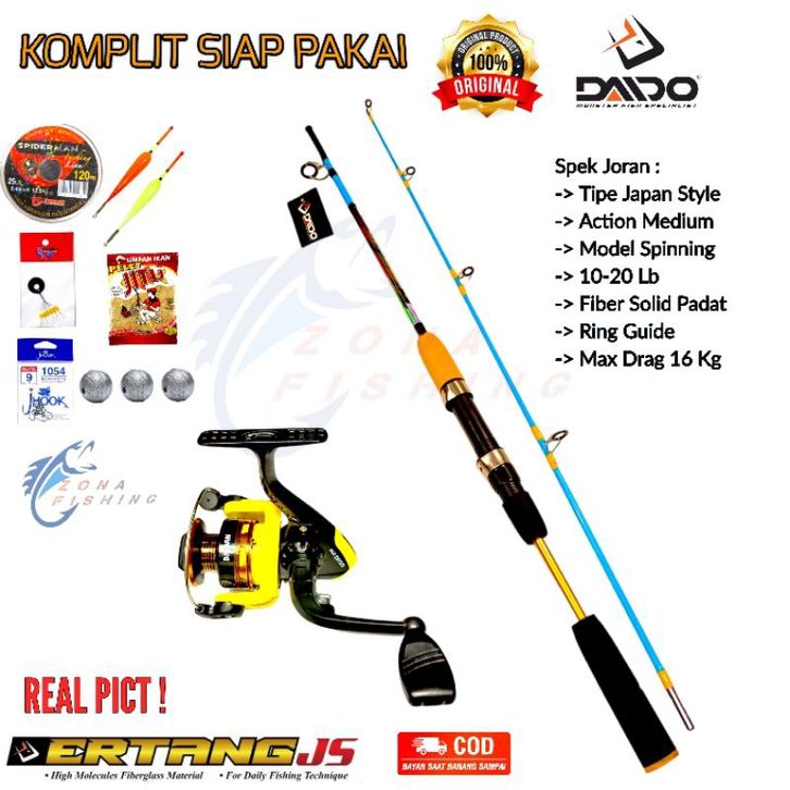 Set Pancing Daido Japan Style drag 16 kg Komplit Joran Laut Kolam Siap Pakai 120 Sampai 180 Cm Fiber Solid Laris