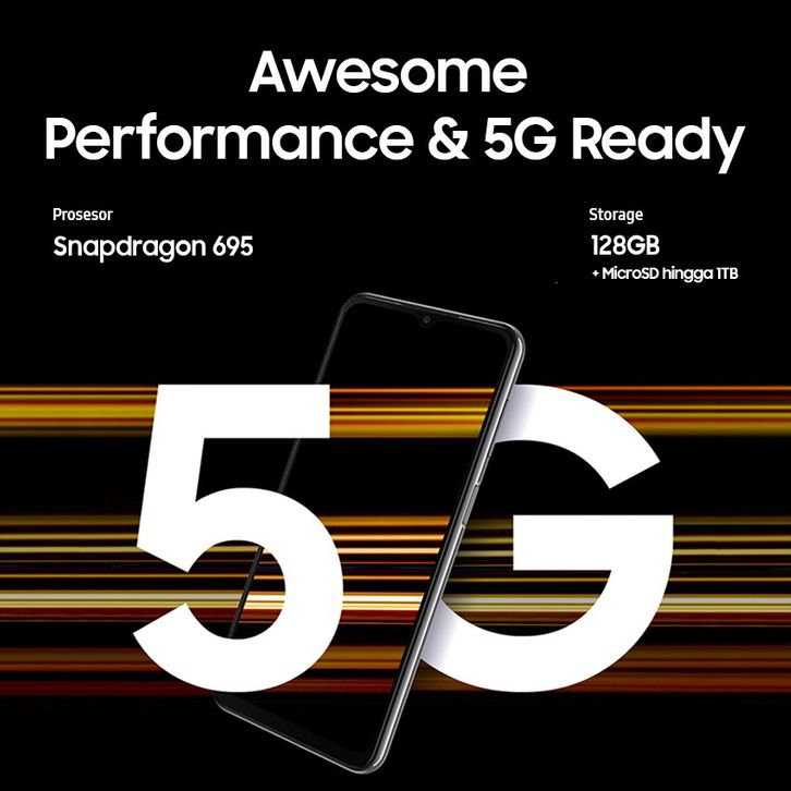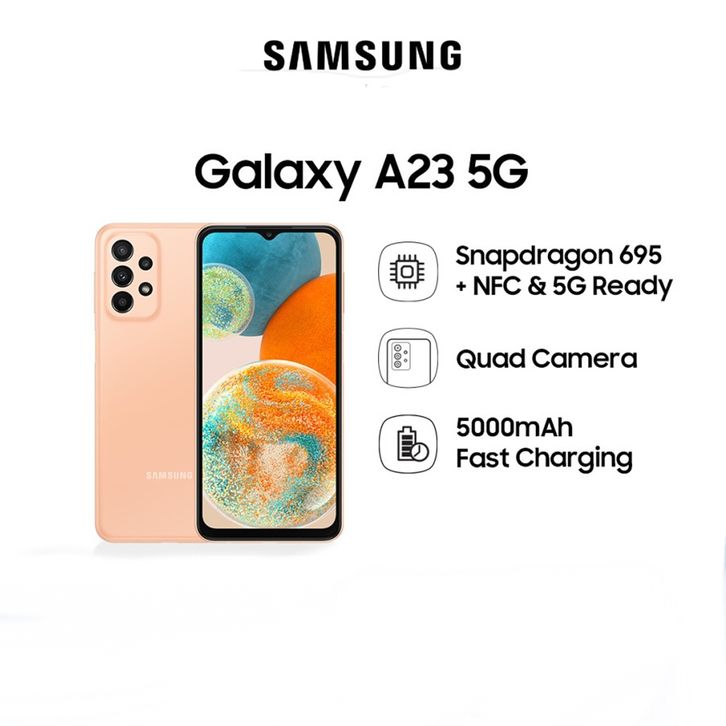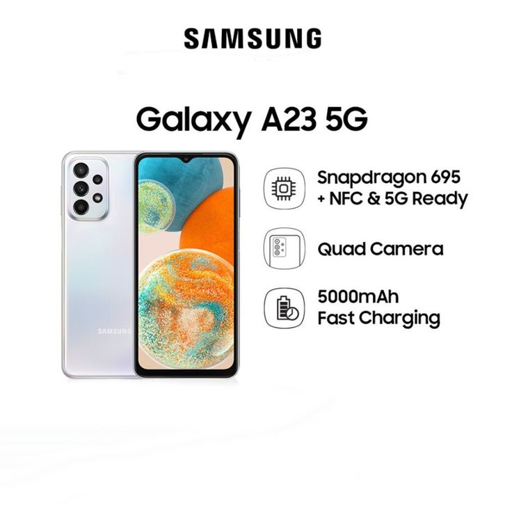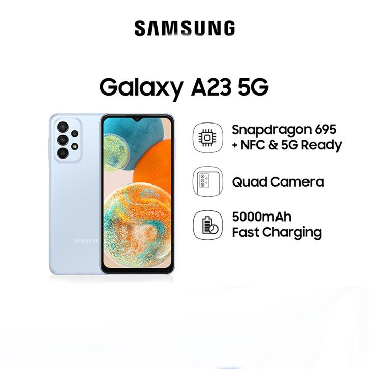 Samsung Galaxy A23 (5G) | NFC | 6/128 | OS Android | Chipset Snapdragon 695 5G | Baterai 5000 mAh | Garansi