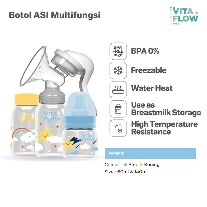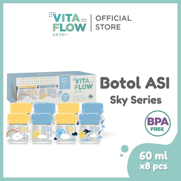 VITAFLOW Botol ASI 3in1 PP 60ml 1 Paket 8 pcs - Sky Series Ready stock