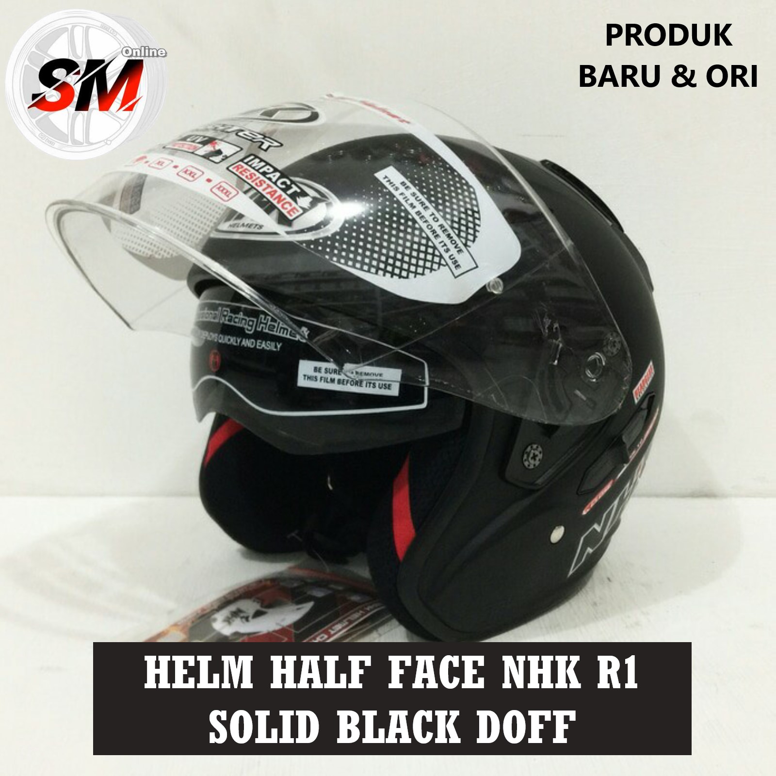 HELM HALF FACE NHK HELM NHK R1 HITAM DOFF BLACK SOLID DOFF DOUBLE VISOR