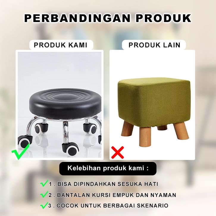 Kursi Dingklik Dudukan Busa Tebal & Empuk Bangku Jongkok Kaki Besi Beroda Praktis High Quality