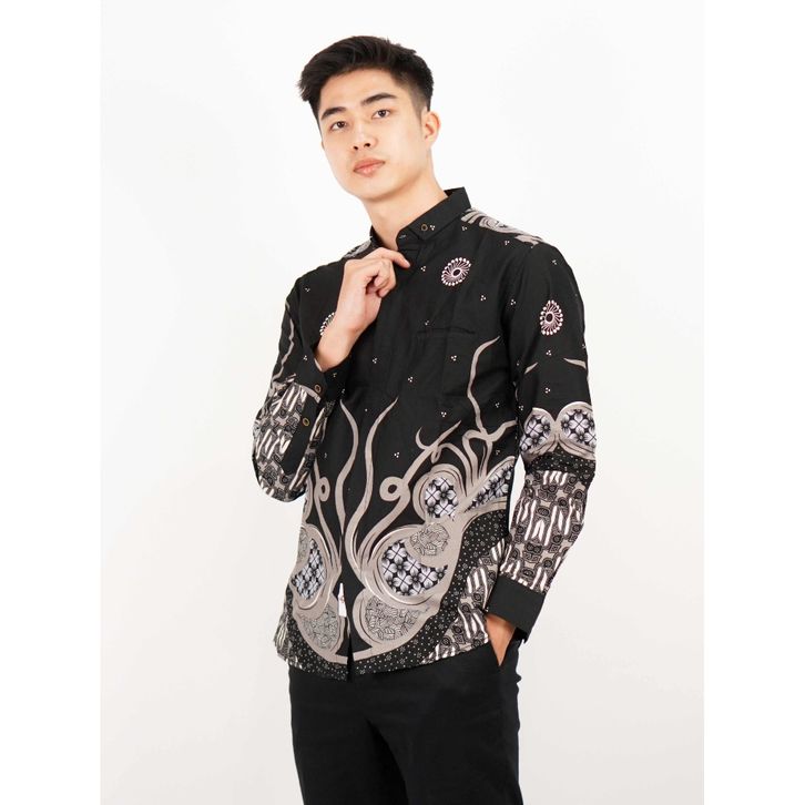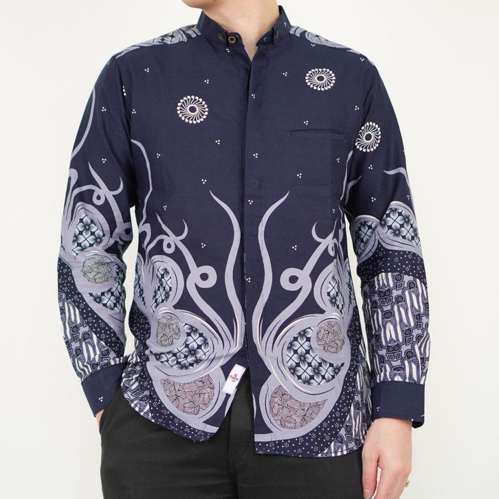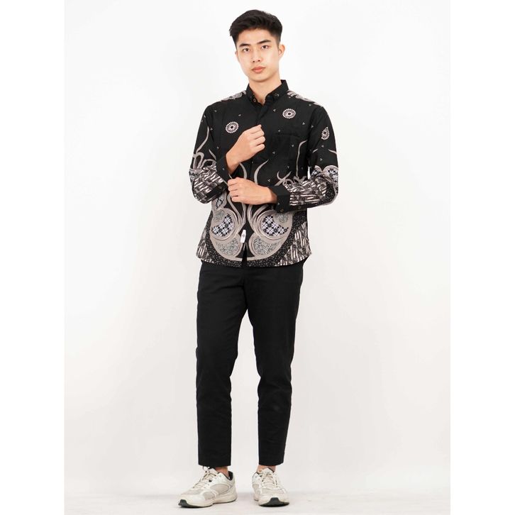 Kemeja Basic Jumbo Motif Pria Slimfit Panjang Night Ukuran M-3XL