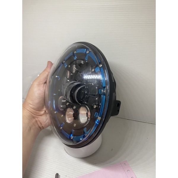 Lampu Depan Ukuran 7 Inch New 16 Led Mata Dot Sae Angel Eye Tanpa Batok Set Kanan Kiri Plus Braket Daymaker Berkualitas