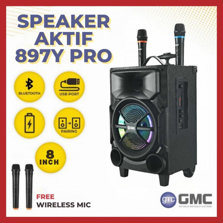 GMC 897Y Pro Speaker Bluetooth Karaoke 8" Gratis 2 Mic Wireless