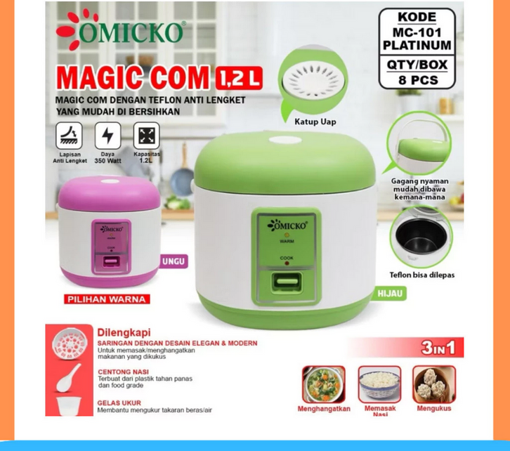 OMICKO RICE COOKER / MAGIC COM MC-108 PL / MC-101 PL / MC 101 PL / MC101 PL (1,2 / 1,8 LITER) GARANSI RESMI