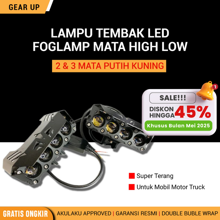 Lampu Tembak Led Foglamp 2 Dan 3 Mata High Low Dekat Kuning Jauh Putih Sepasang 2 Pcs Model Mini Driving Berkualitas
