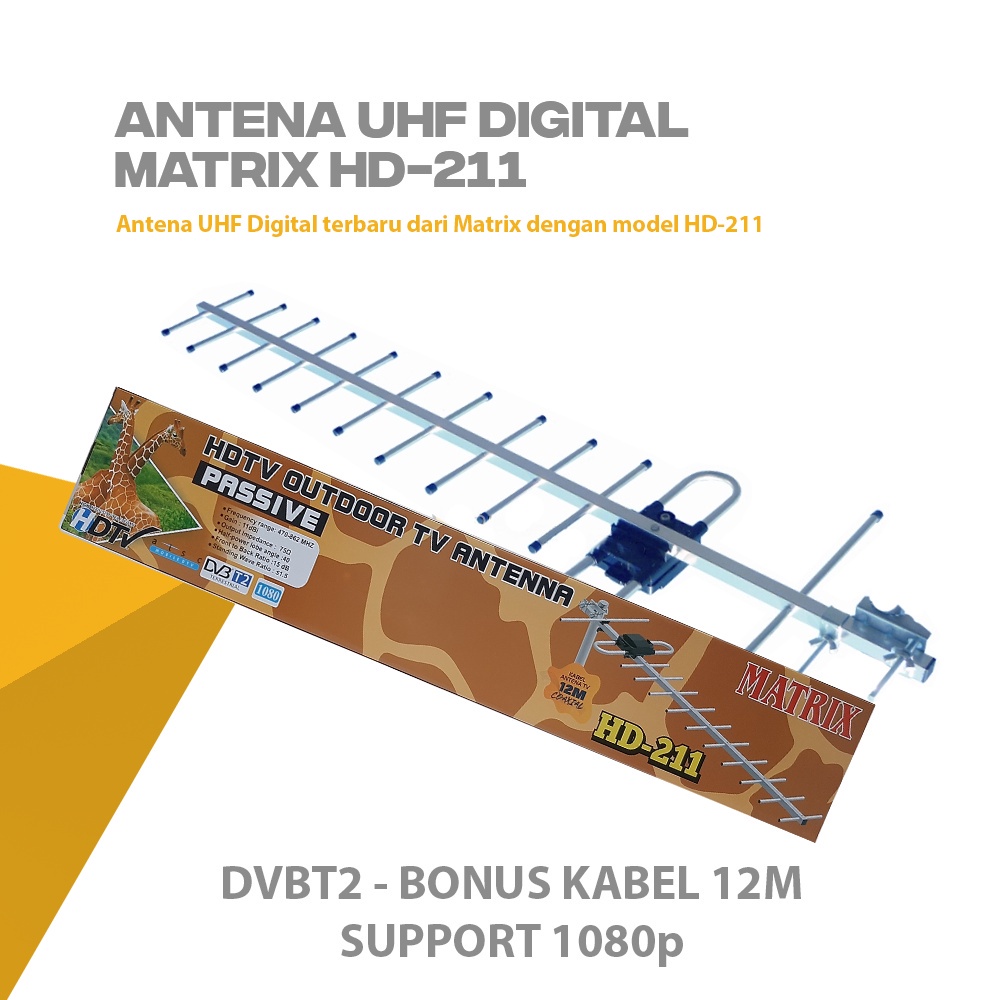MATRIX ANTENA TV DIGITAL + BOOSTER HD211 / HD 211 / HD-211 (FREE KABEL) GARANSI RESMI