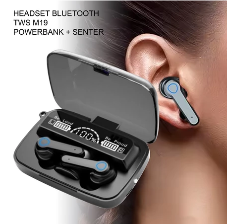 Headset Bluetooth M19 Full Bass TWS True Wireless Earphone Original
