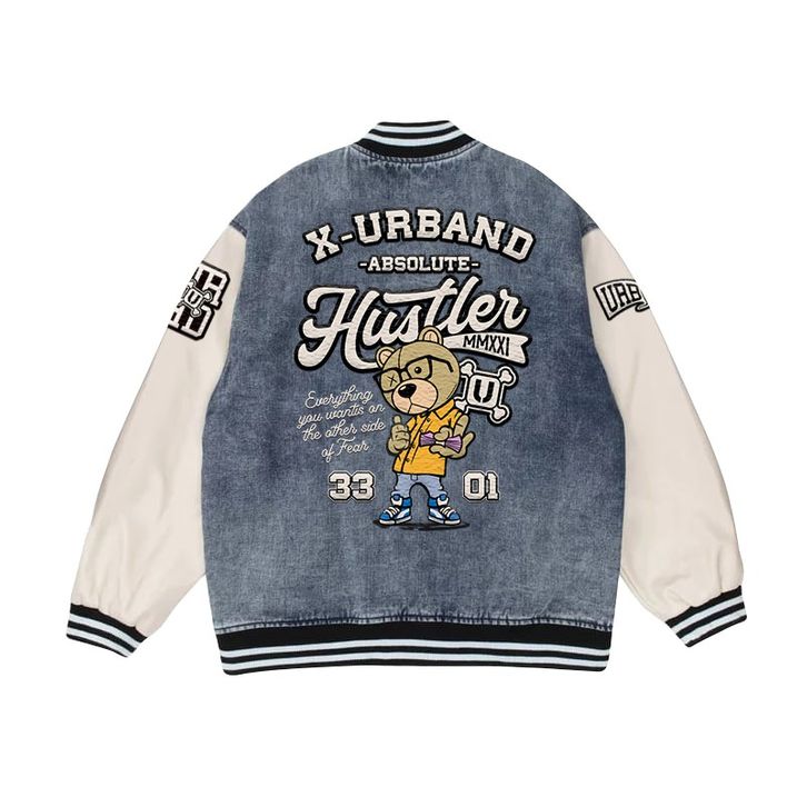 VARSITY JACKET DENIM BEAR UNIVERSITY A259 X URBAND ABSOLUTE JAKET DENIM PRIA TERBARU PREMIUM QUALITY TERBARU 2023