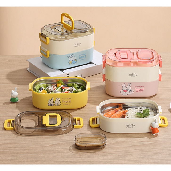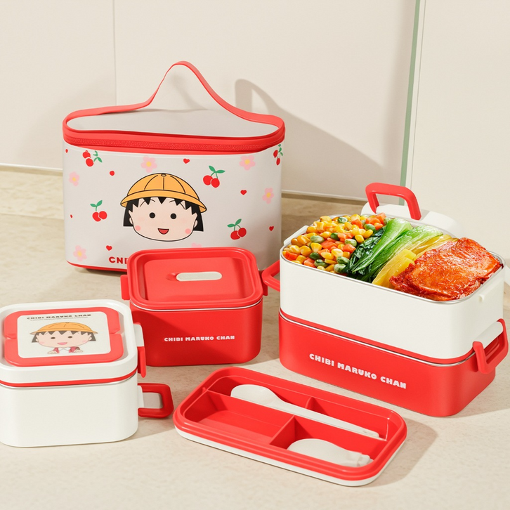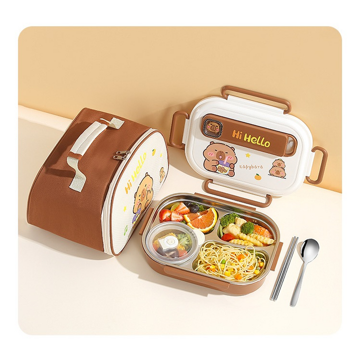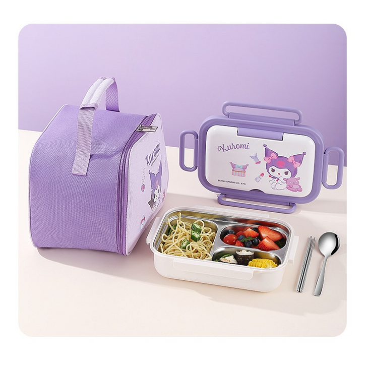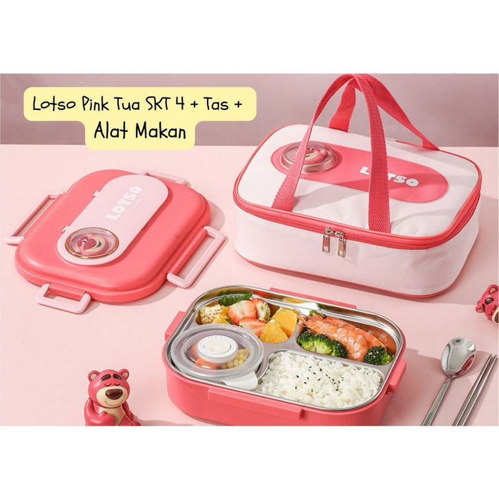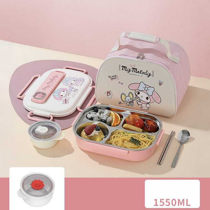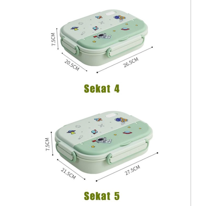 Kotak Makan Anak Stainless Anti Tumpah Lunch Box Bento Sekat Kotak Bekal Set Alat Makan Free Cooler Bag