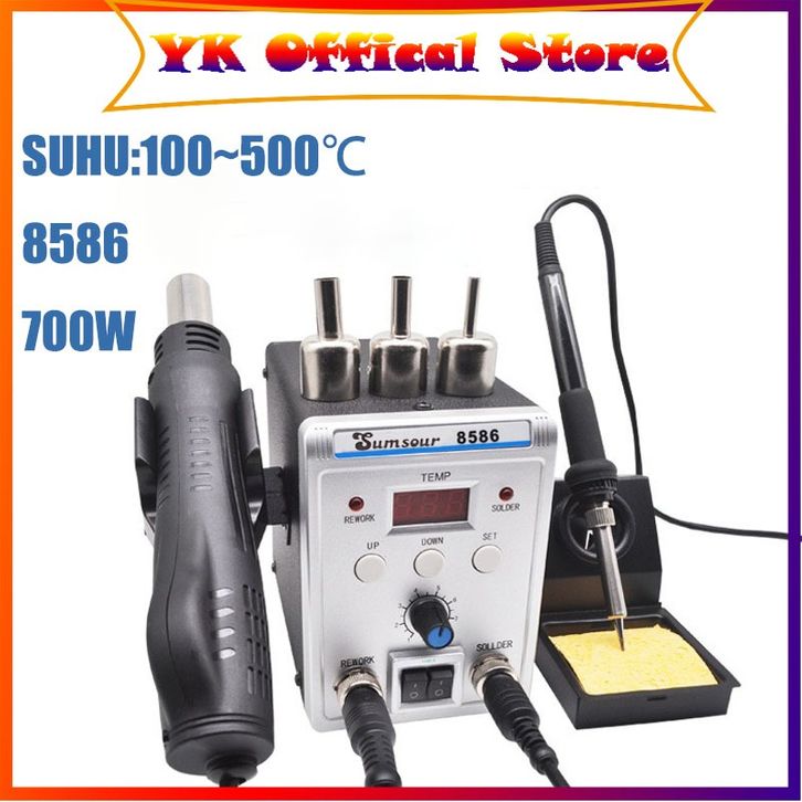 Solder Blower Alat Las 8586 700W 2 in 1 Digital Display SMD Ulang Desoldering Heat Air Gun Solder Besi 220V ESD Pematri