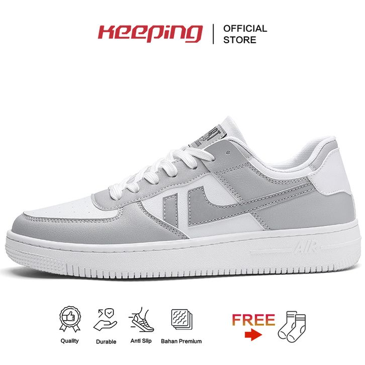 Keeping Sepatu Sneakers Pria Original Trendy Terbaru Cowok Keren Putih Abu Men Sports Running