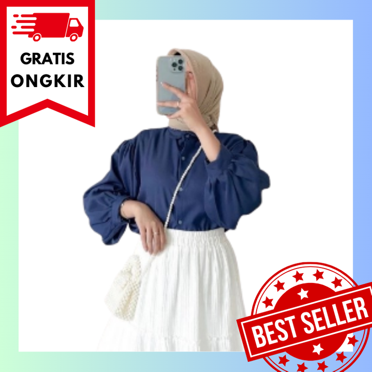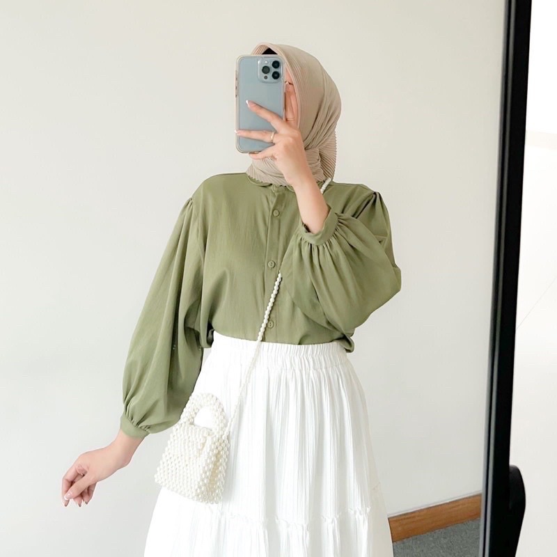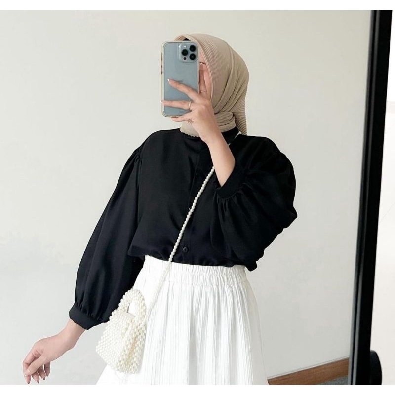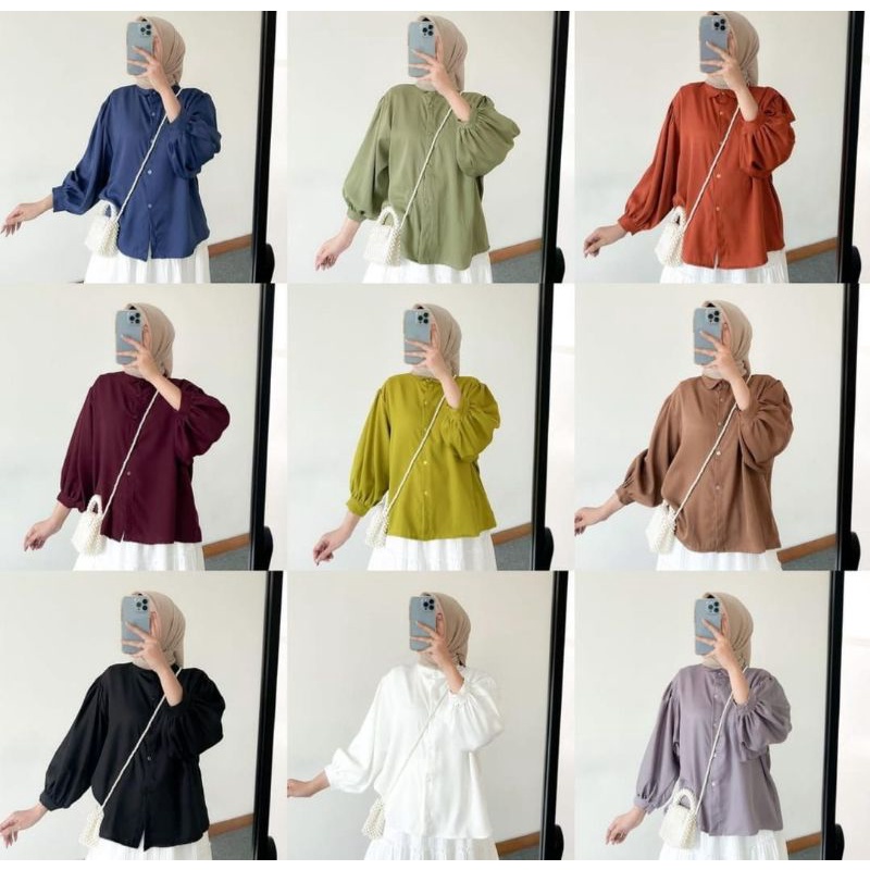 BLOUSE KEMEJA ELZE ATASAN WANITA SHAKILA TWILL LENGAN BALON FULL KANCING