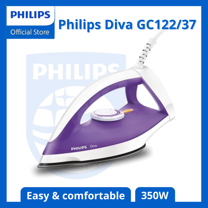 Setrika Philips Original Gosokan Kering Diva GC122/37 Ungu Setrikaan Philip Terbaik Seterika Tahan Lama - Official Store