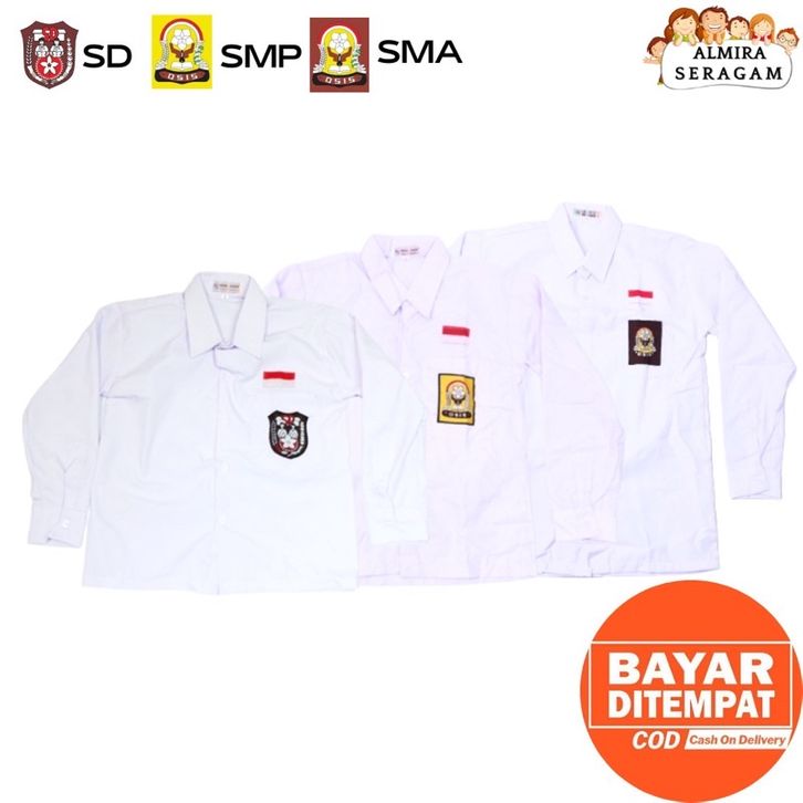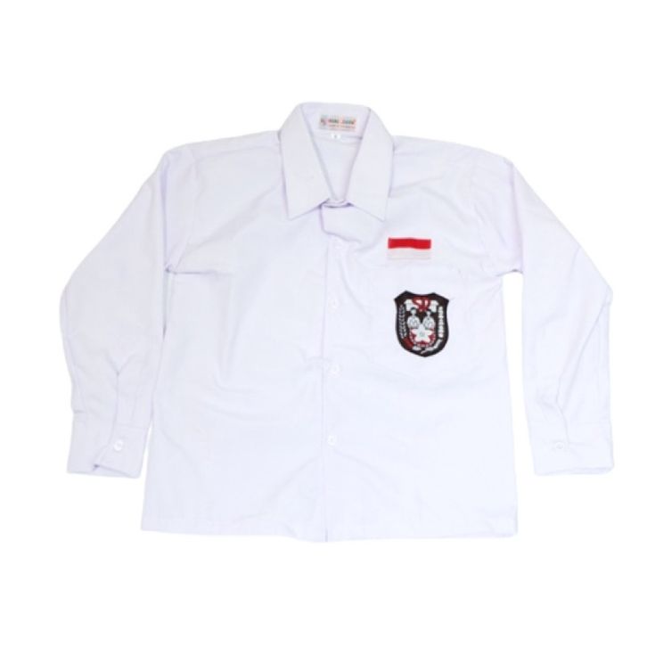 Baju Kemeja Seragam Sekolah SD SMP SMA Lengan PANJANG Putih Tebal Oxford Logo Bordir