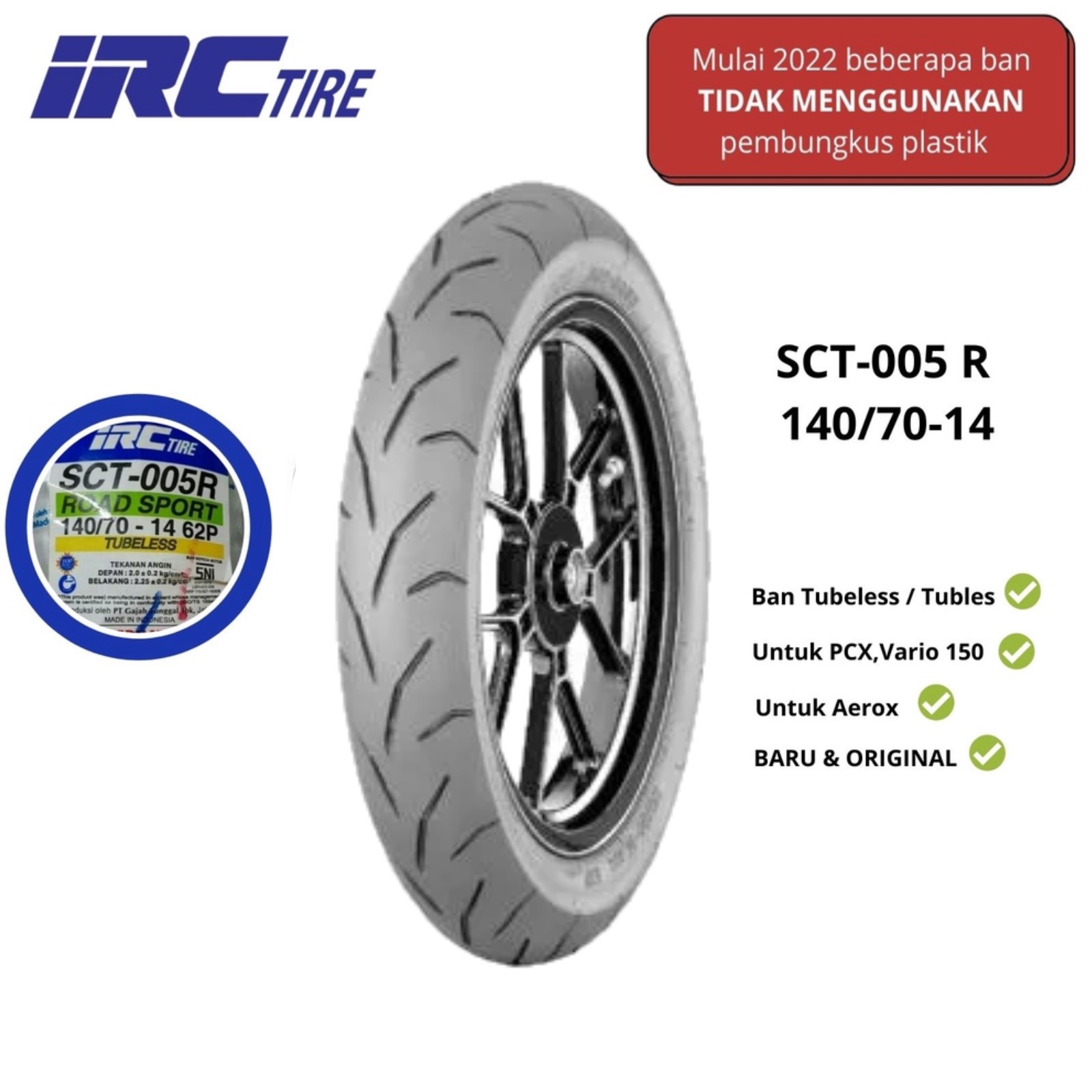 BAN BELAKANG AEROX BAN IRC SCT-005 R / SCT005R 140/70-14 BAN TUBELESS AEROX 155 BELAKANG FREE PENTIL