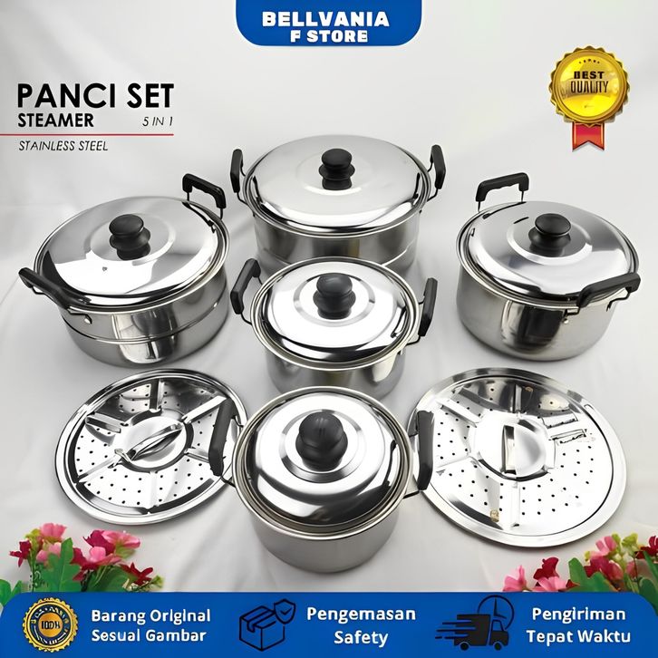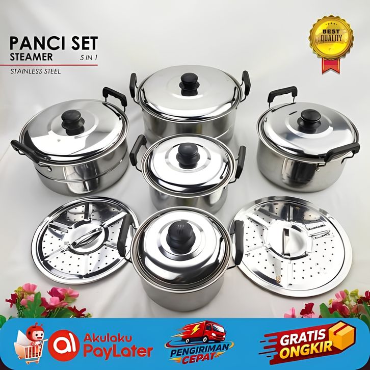 Panci Sup Sop Soup Kukus Set Serbaguna Steamer Stainless 5 IN 1