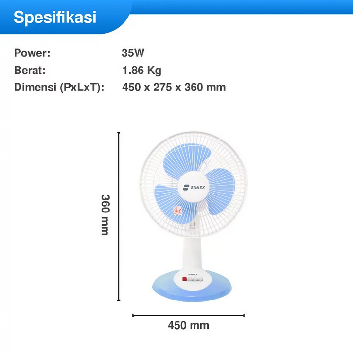 SANEX DESK FAN / KIPAS ANGIN FD-1287 / FD 1287 (12 INCH) GARANSI RESMI