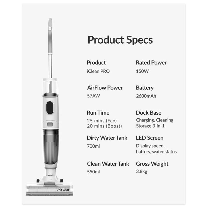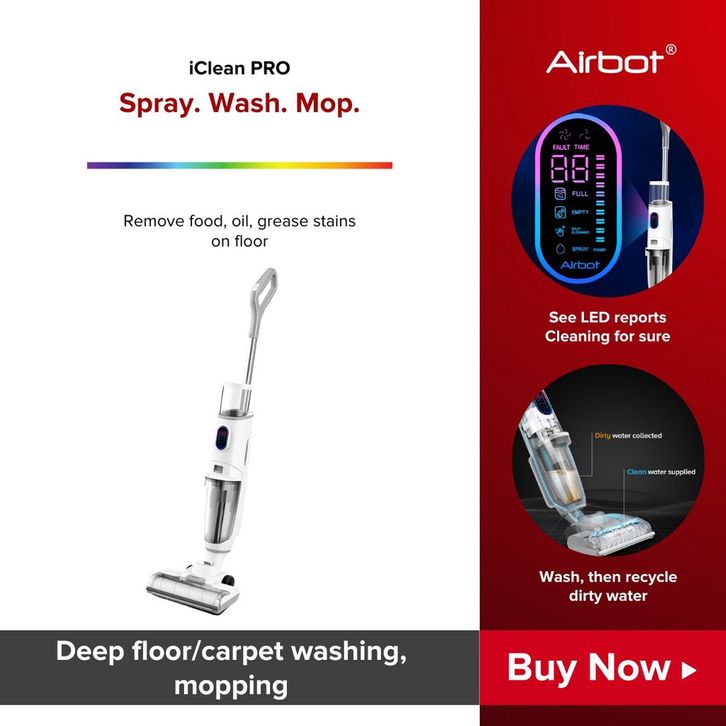 Airbot iClean Pro Wet Dry Cordless Vacuum Cleaner Stick Smart Floor Scrubber Washer Penyedot Debu