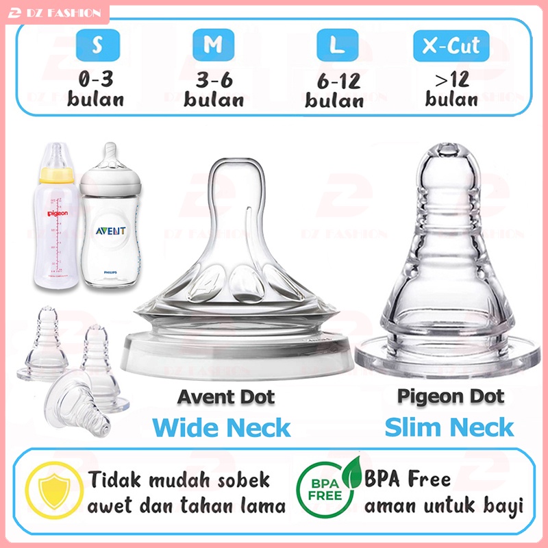 DOT BAYI UNTUK PIGEON SLIM NECK/AVENT WIDE NECK DOT BAYI BOTOL SUSU KARET DOT NIPPLE PERISTALTIK BOTOL SUSU STANDAR