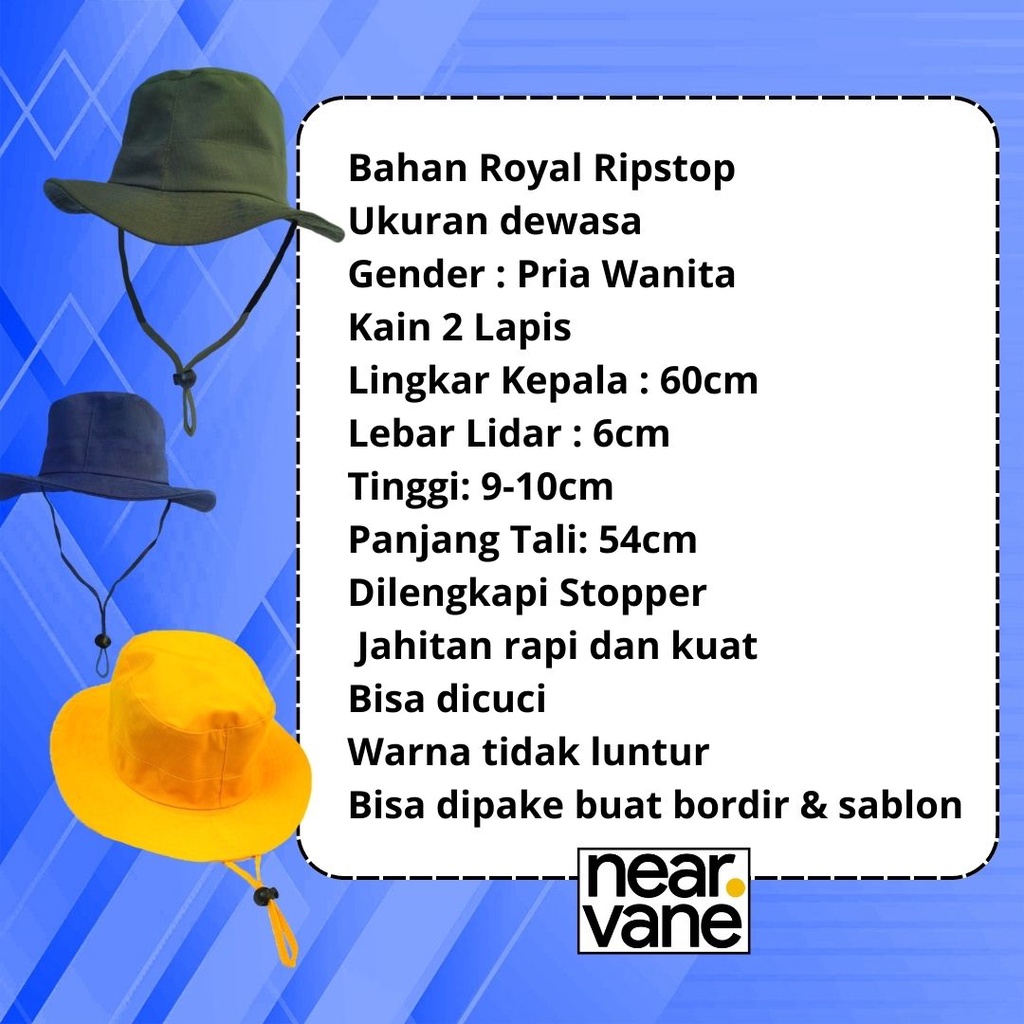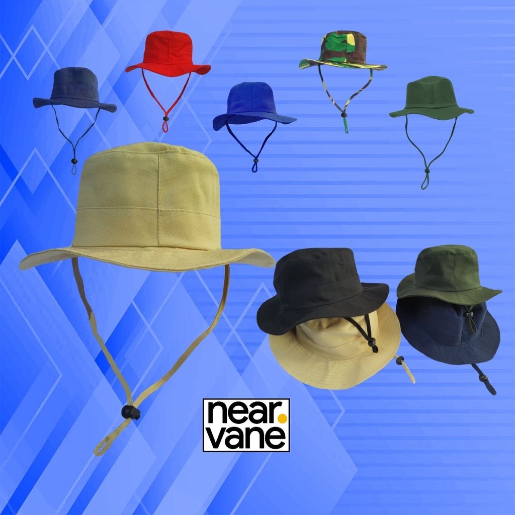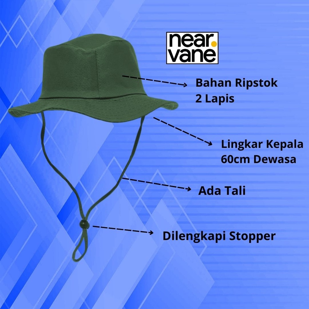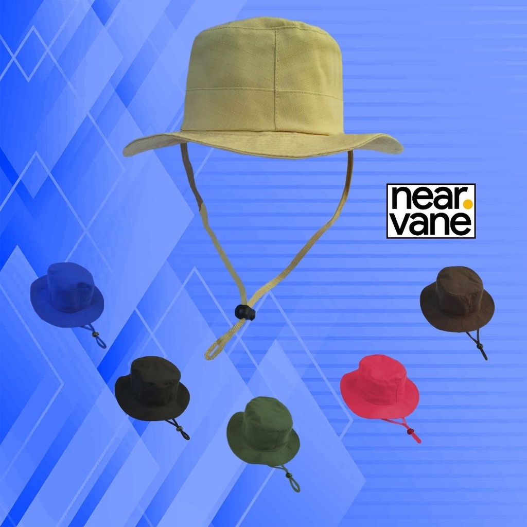 TOPI BUCKET HAT GUNUNG RIMBA TALI HIKING OUTDOOR LAPANGAN PANTAI CAMPING KEMPING MENDAKI CREAM ARMY HITAM KEPLEK