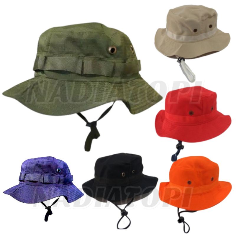 TOPI RIMBA JUNGLE GOOD QUALITY VARIASI MODEL BAHAN RIPSTOP (READY HIJAU ARMY, NAVY, HITAM, KREM)