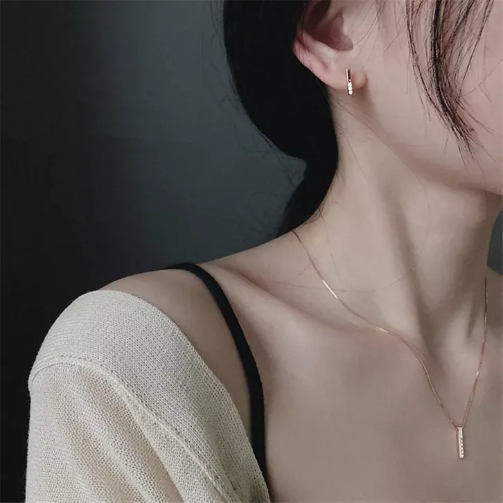 AZ017 【Barang spot 】 Kalung Liontin Panjang Geometris Rantai Klavikula Wanita Liar Modis Dan Sederhana Hadiah Ulang Tah