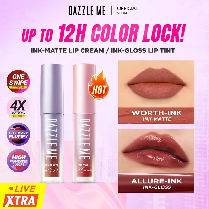 DAZZLE ME Ink-Matte Lip Cream & Ink-Gloss Lip Tint with Comfy Matte and Glossy Finish High Pigmented
