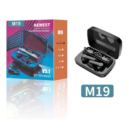 Tws True Wireless M19 Headset Bluetooth Full Bass With Powerbank 3500 mAh