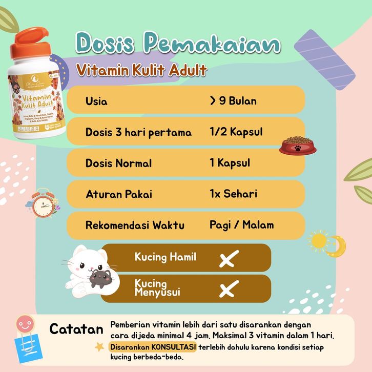Olive Care Vitamin Kucing MASALAH KULIT DEWASA untuk Bulu Rontok, Jamur, Kutu, Scabies, Ringworm, Ruam dan Radang Kulit
