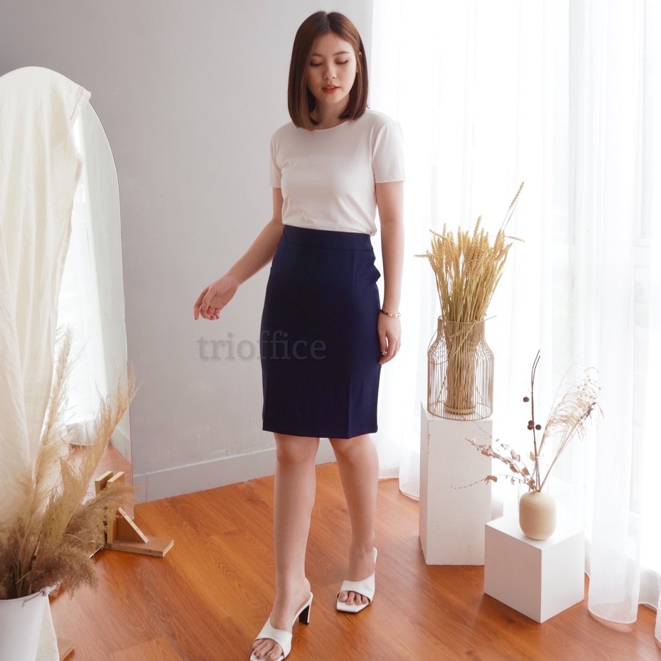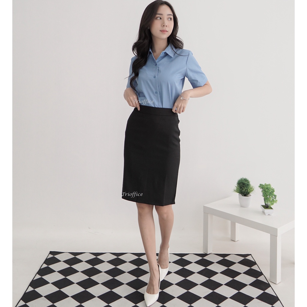 ROK SPAN HITAM KERJA FORMAL PENDEK SELUTUT 3/4