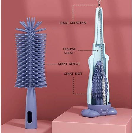 Sikat Botol Susu Bayi 3in1 Bahan Silikon Pembersih Dot