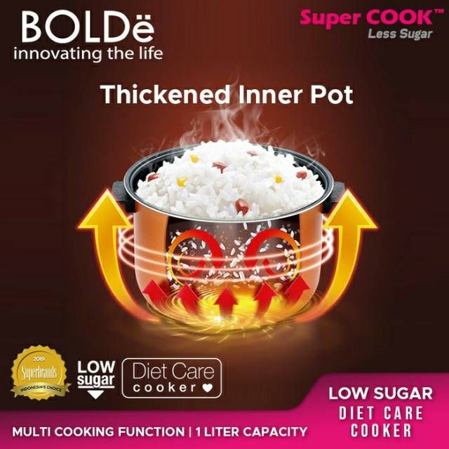 RICE COOKER DIGITAL BOLDE SUPER COOK LESS SUGAR 1L LOW CARBO 400 WATT NEW ORIGINAL GARANSI RESMI TERLARIS MURAH TANPA DP