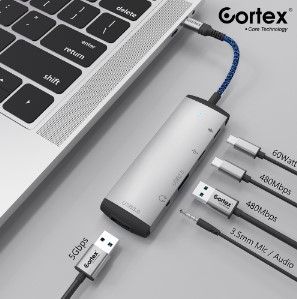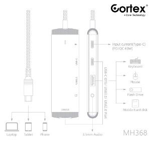 Cortex Mh368 Hub Splitter 5In1 Type-C To Usb3.0 + 2.0 + Audio 3.5Mm + Type-C Data With Pd Charging 60W Termurah