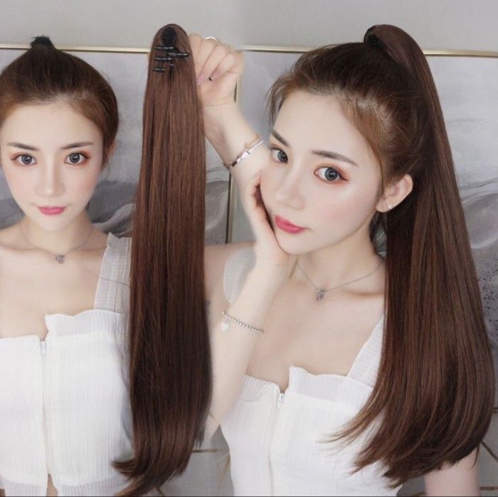 Ponytail jepit lurus natural (50cm) wig hairclip hair extension