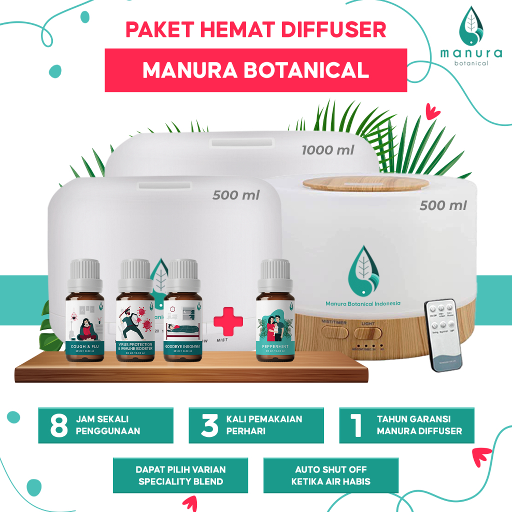 4 MANURA ESSENTIAL OIL & DIFFUSER 500ML/000 ML DIFFUSER HUMIDIFIER AROMATHERAPY UKURAN BESAR UNTUK KAMAR TIDUR