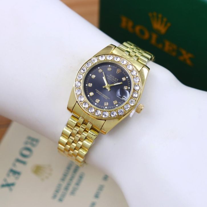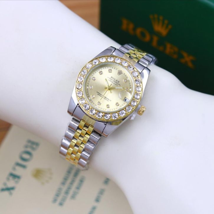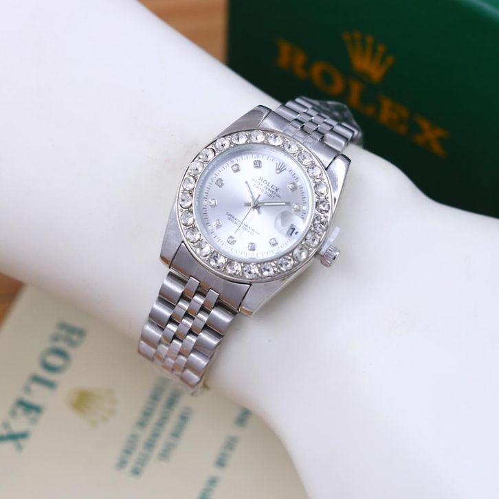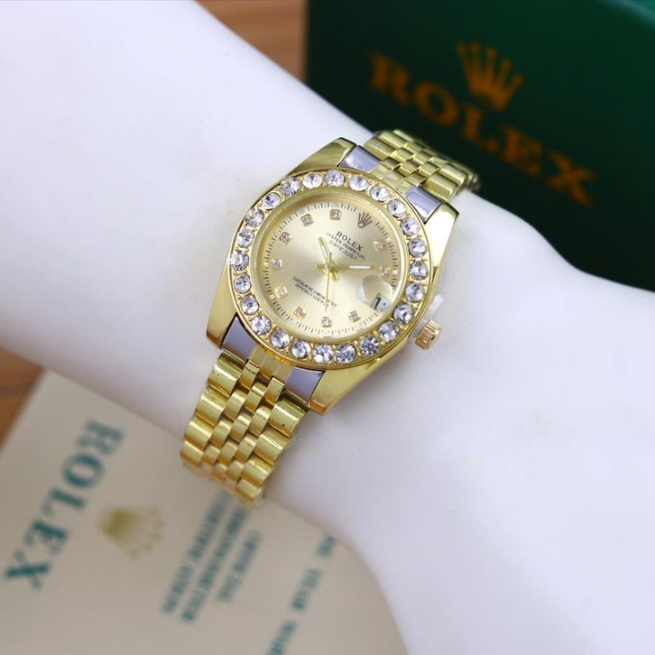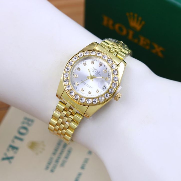 Jam Tangan Wanita Mewah Rolex Oyster Tali Rantai Case Diamond Tanggal Aktif Free Box Ori Baterai Cadangan